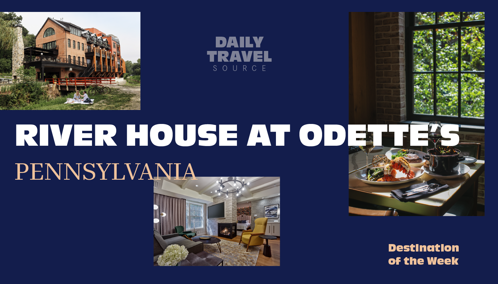 Set along the Delaware River, River House at Odette’s transforms a storied New Hope address into a refined 36-room boutique retreat. Honoring the legacy of Odette Myrtil’s former cabaret through preserved details, live music, and thoughtful design, the hotel blends history with modern luxury.